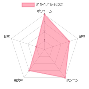 香りはスミレやダークチェリー、ほんのりバルサミコのニュアンスも。味わいはしっかりしたタンニンと引き締まった酸が印象的で、余韻までスパイスや果実の風味が長く続きます。時間をかけてじっくり楽しみたい一本です。