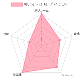 ブルーベリーやスミレの香りがふわっと広がって、飲むとしっかりした果実感とコクのある味わい。余韻にはビターなチョコやスパイスのニュアンスも残って、落ち着きのある深みを感じます。しっかり飲みたい夜にぴったりです。